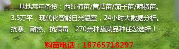 寿光蔬菜种苗育苗厂/基地是一家专门育西红柿苗、黄瓜苗、茄子苗、辣椒苗的厂家。西红柿种苗(大粉粉/大红、口感西红柿),小番茄苗(小黑、小粉、小红、小绿、小黄),嫁接黄瓜苗(大小黄瓜苗、旱黄瓜、水果黄瓜),甜瓜苗(绿宝、羊角蜜、博洋系列),西瓜苗(8424、甜王、京欣、红玉),辣椒苗(尖椒、线椒、螺丝椒、拢椒、圆椒),茄子种苗(长茄苗、圆茄苗),西兰花苗、菜花苗、甘蓝苗、白菜苗、青花菜系列等其他数十种蔬菜种苗。咨询热线(18765718297)