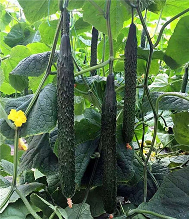 越冬早春黄瓜苗特点,植株生长势强,叶片小,叶色深绿,主蔓结瓜为主,有很好的带瓜能力,单株可同时着生2-3条瓜条而生长正常,回头瓜多,亩产高达30000公斤以上。品质好,瓜条顺直,瓜长33cm,瓜绿把短,有光泽,刺密,心腔较细,具有较好的商品性。耐低温弱光能力强,抗霜霉,白粉病。在温度低光照弱的冬季获得较高产量和效益。后期不早衰,采收期可长达6个月,适合秋延、早春、越冬种植。