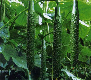 长势较强,叶片浓绿中等大小,经试验证明雌花分化对温度反应不敏感,秋棚栽培第1雌花节位低(一般在78节),收获早,雌花节率较高,畸形瓜率低,每隔3节可见1瓜,成瓜性好,座瓜率达到86.3%,瓜条深绿色、顺直匀称,刺瘤明显,瓜长33cm(厘米),横径3cm(厘米),单瓜重180g(克)。