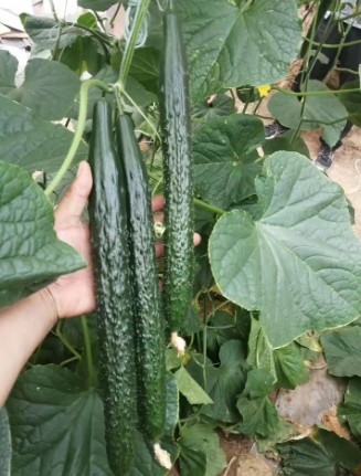 德瑞特9188:品种植株紧凑,长势强,叶片中等,叶色黑绿厚实,节间适中稳定,主蔓结瓜,瓜码10节5-6个瓜,连续结瓜能力强,产量高。在优良栽培条件下,腰瓜长34厘米左右,瓜条整齐、顺直、短把、密刺,黑油亮瓜条,瓜条性能稳定,商品性好。耐高温、抗病能力强。